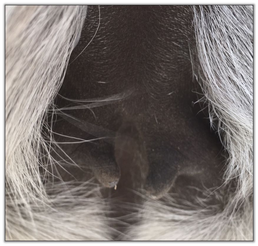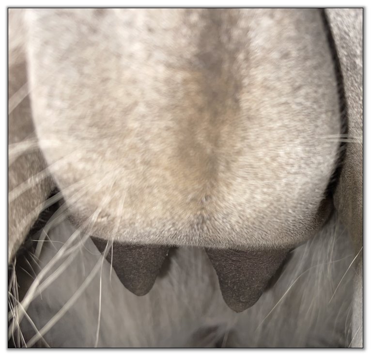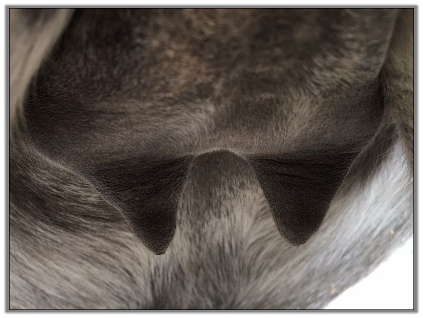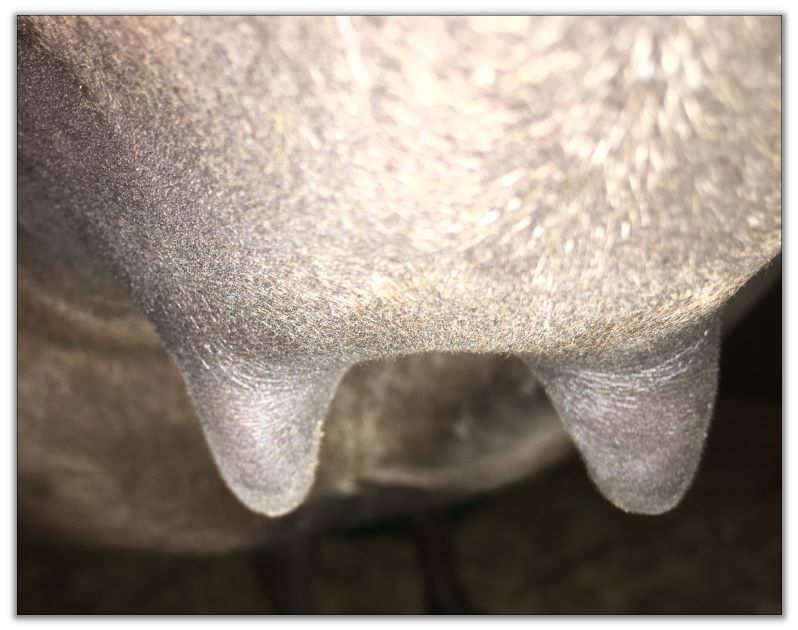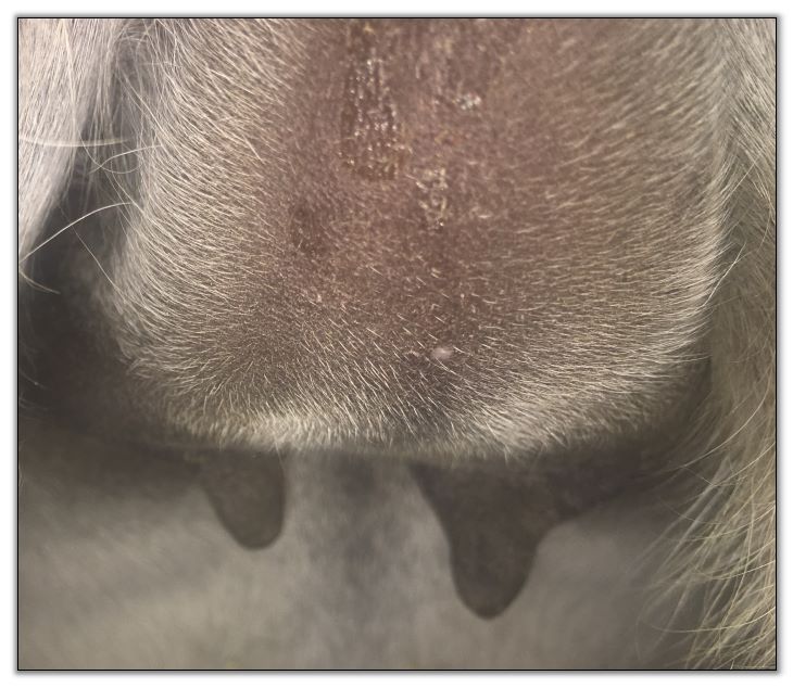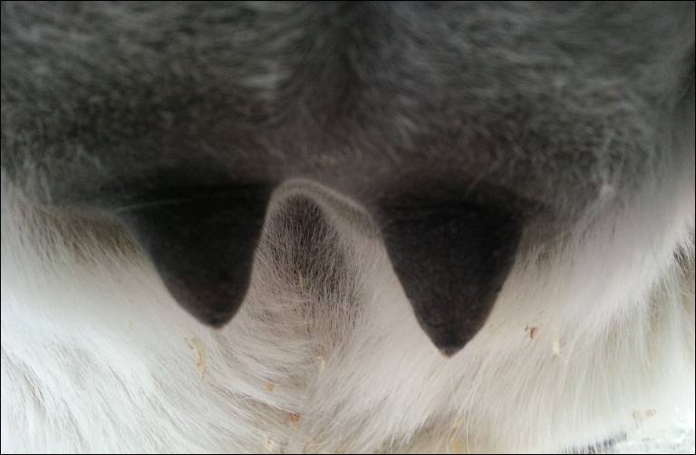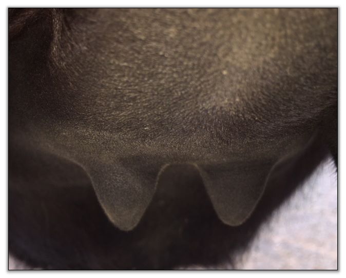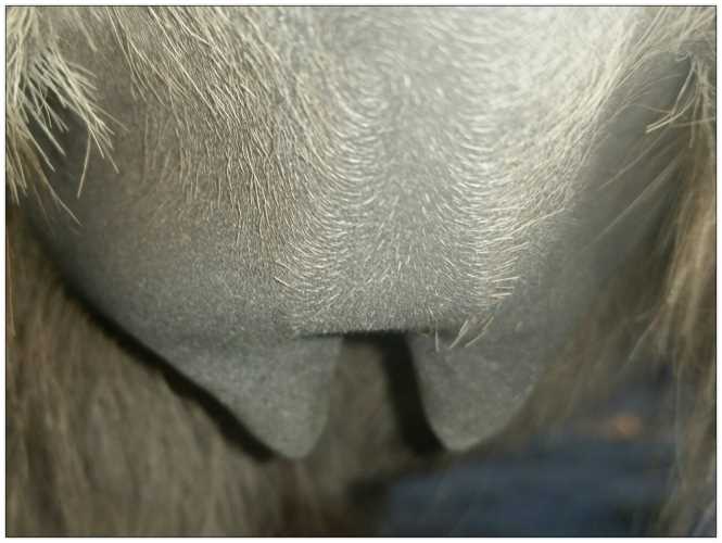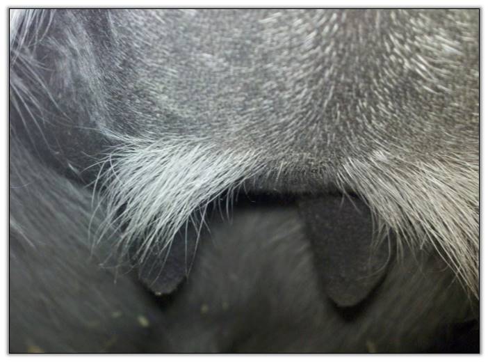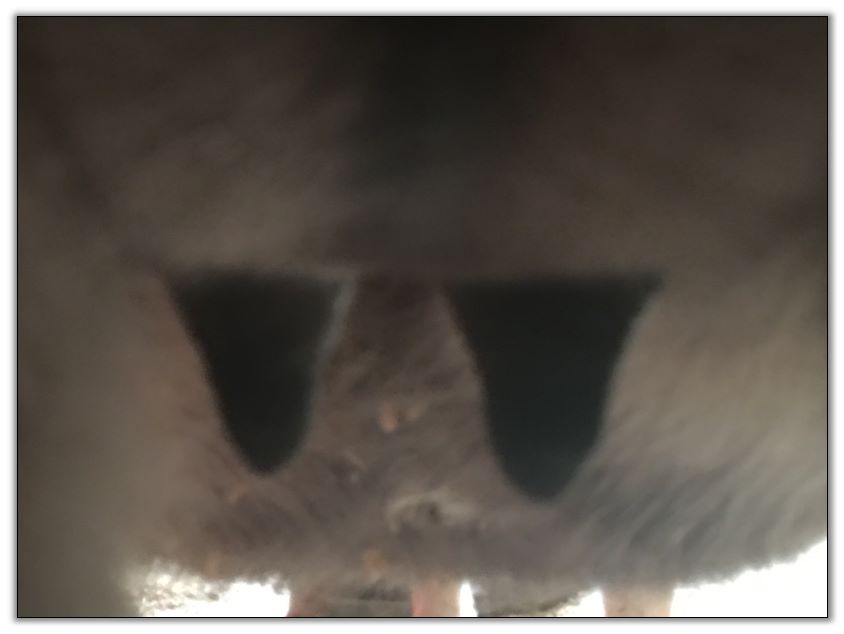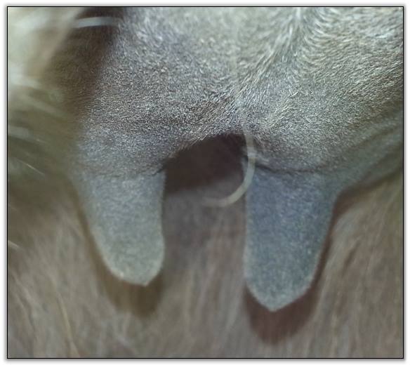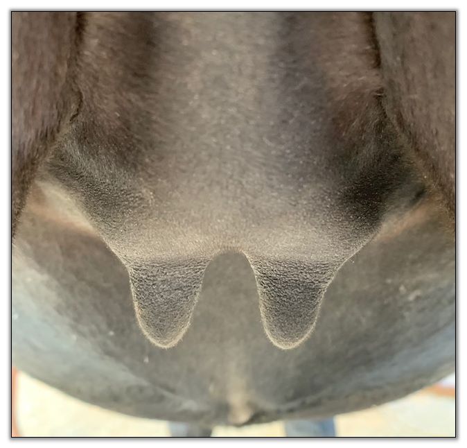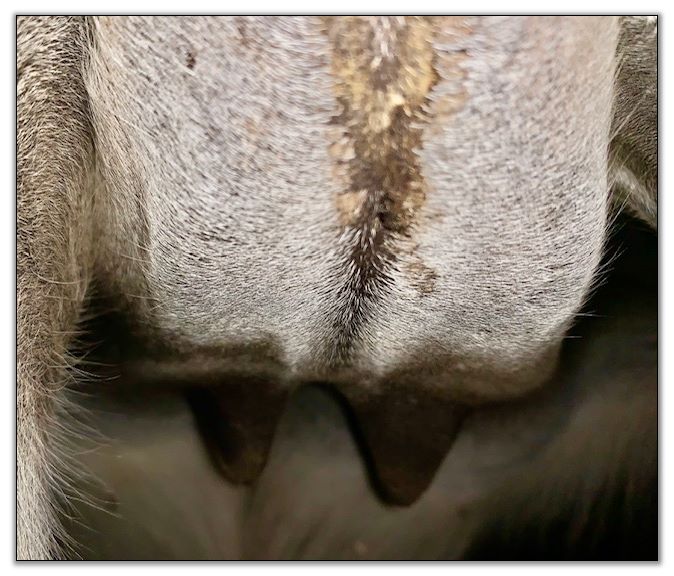 Two hours later and even firmer!! As you can see she is no longer flat but rounding out between her teats. We think she will foal within 24 to 48 hours!