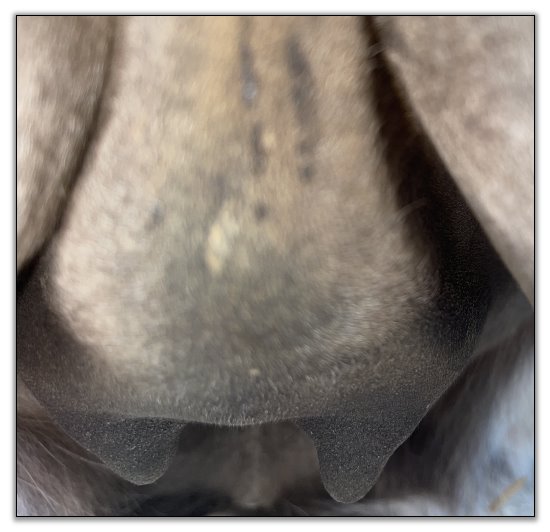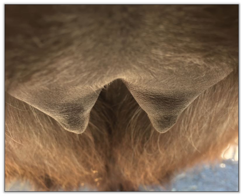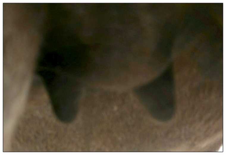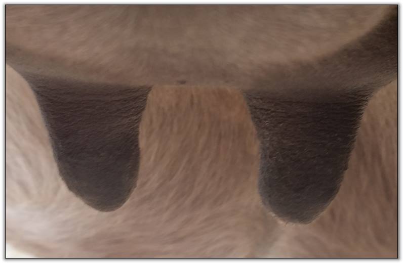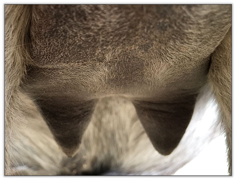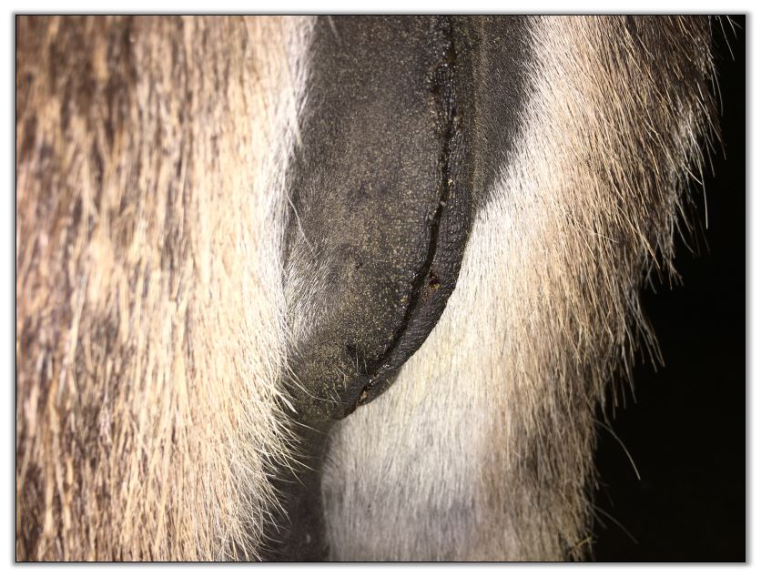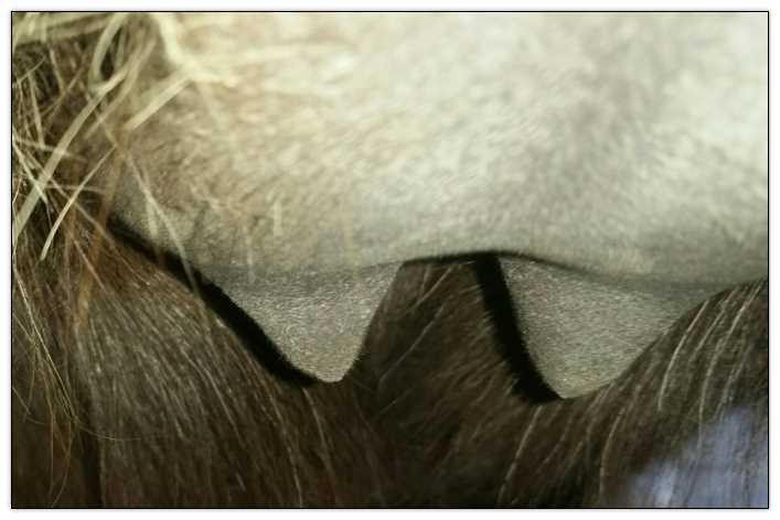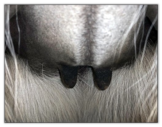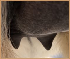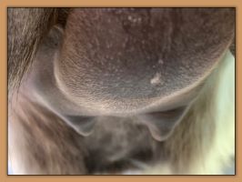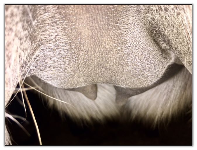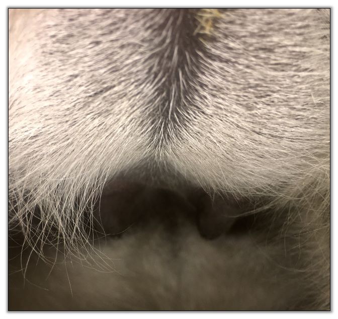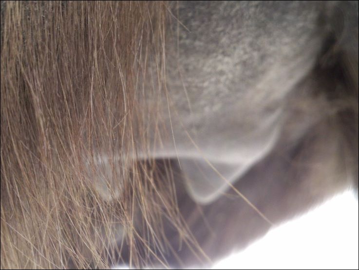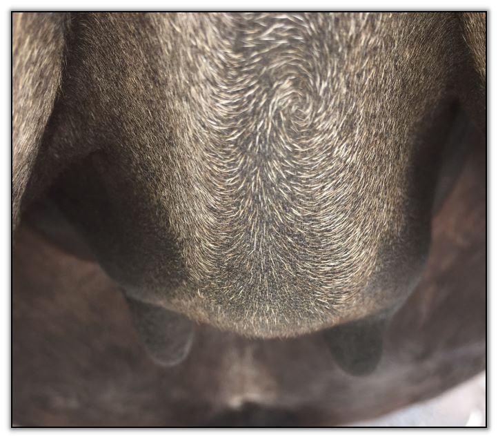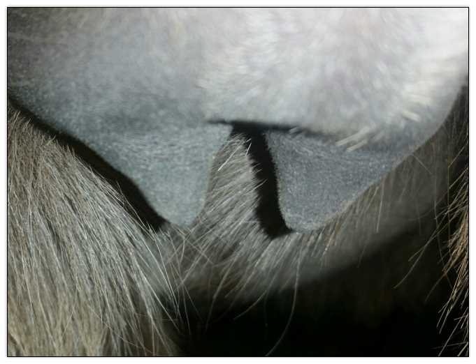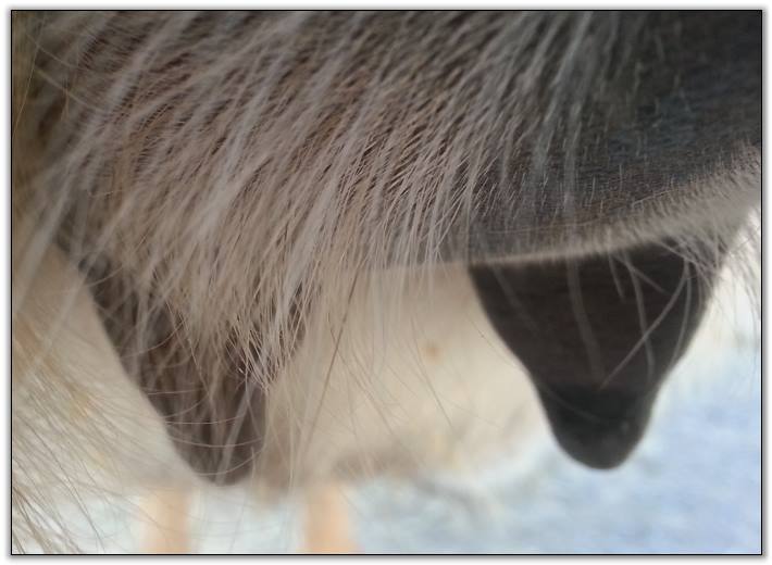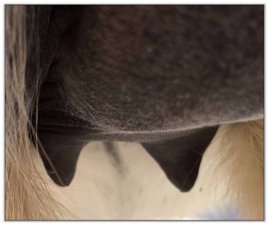 Two hours later and even firmer!! As you can see she is no longer flat but rounding out between her teats. We think she will foal within 24 to 48 hours!