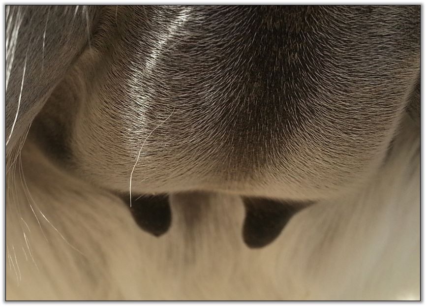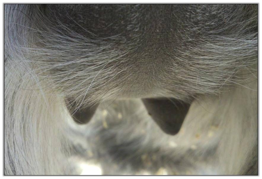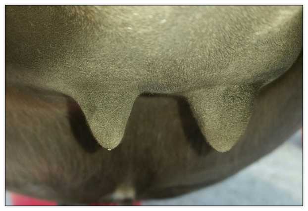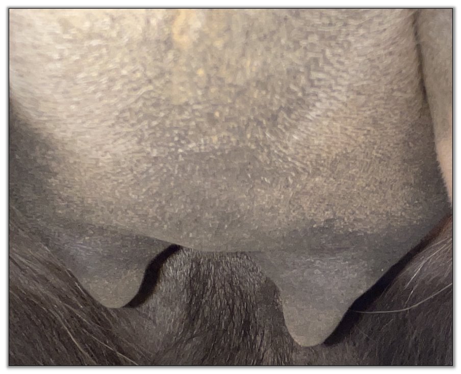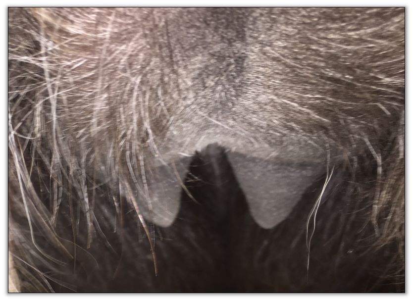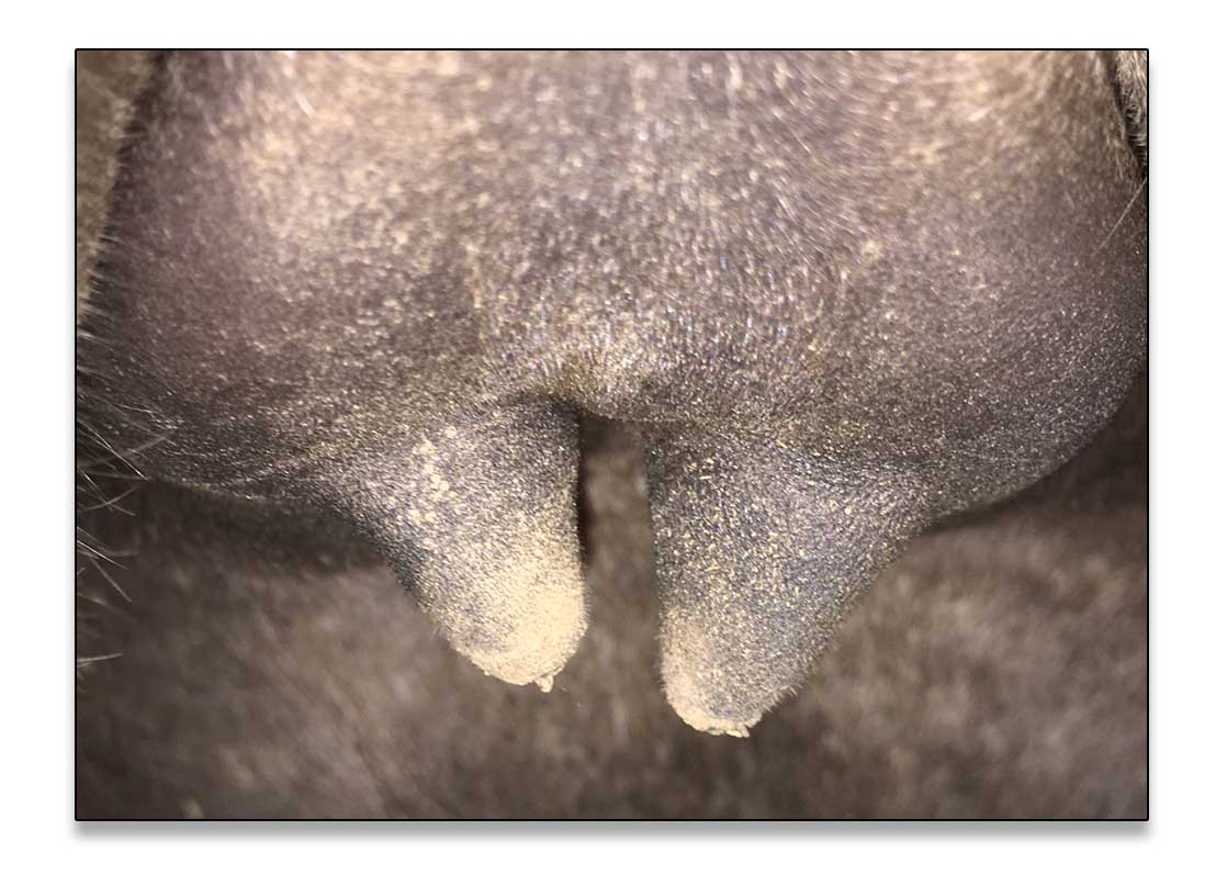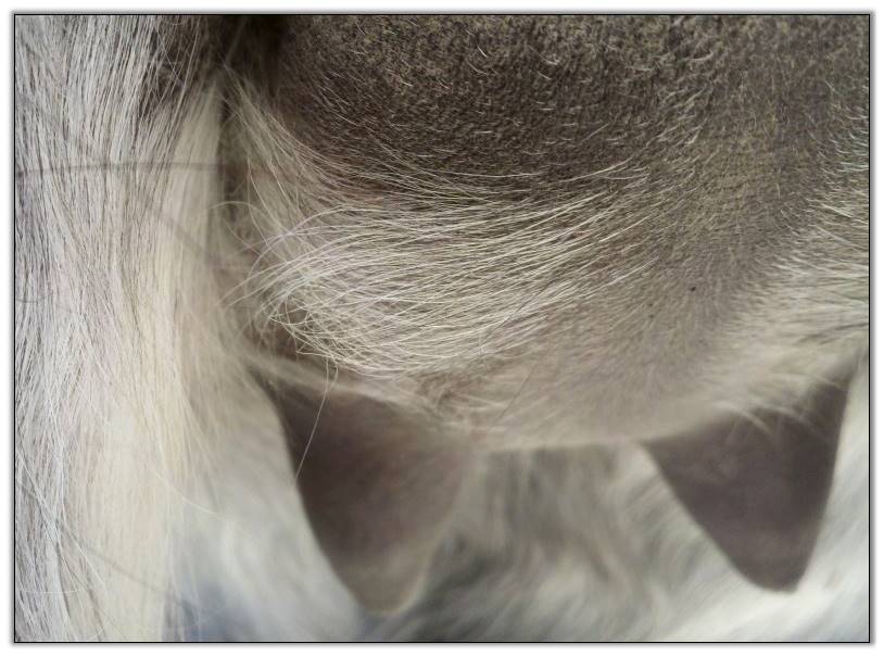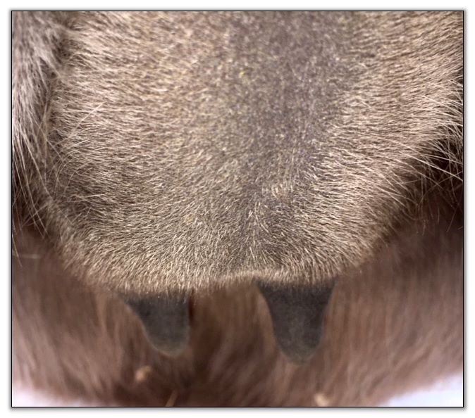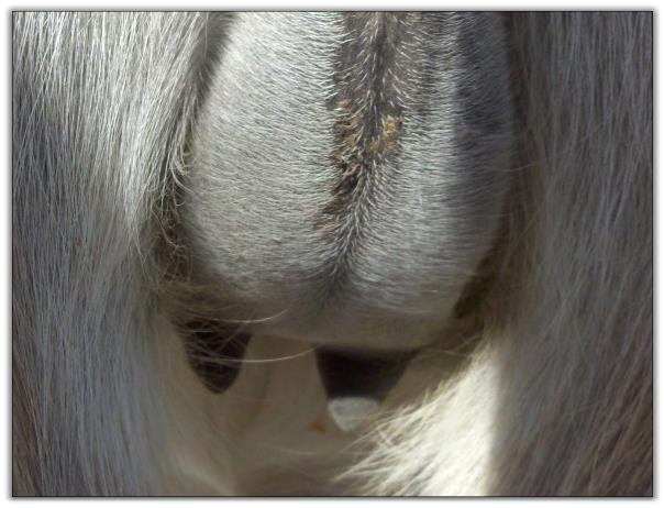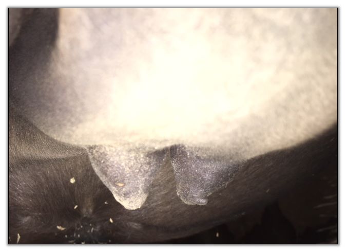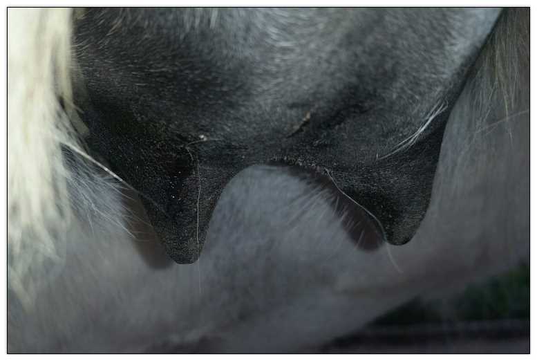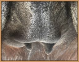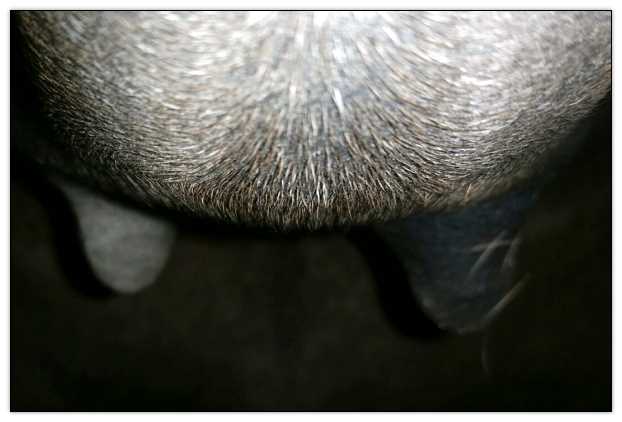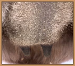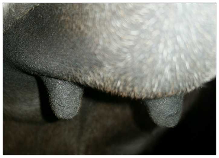 Two hours later and even firmer!! As you can see she is no longer flat but rounding out between her teats. We think she will foal within 24 to 48 hours!