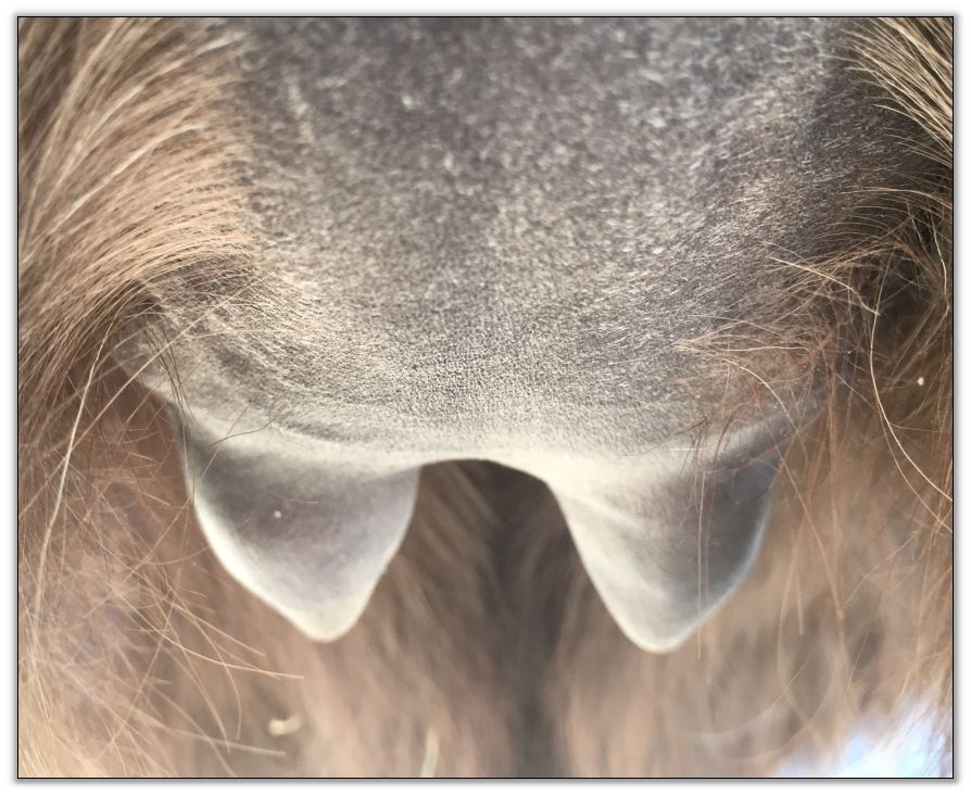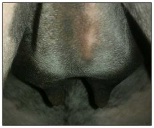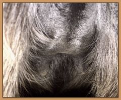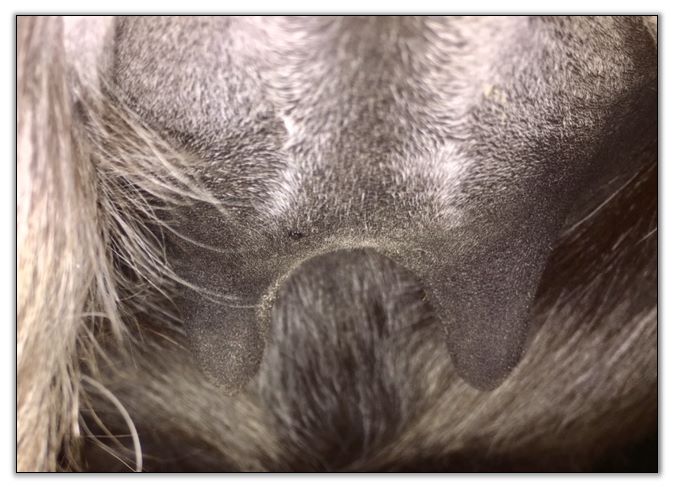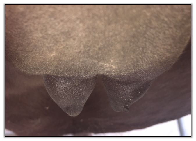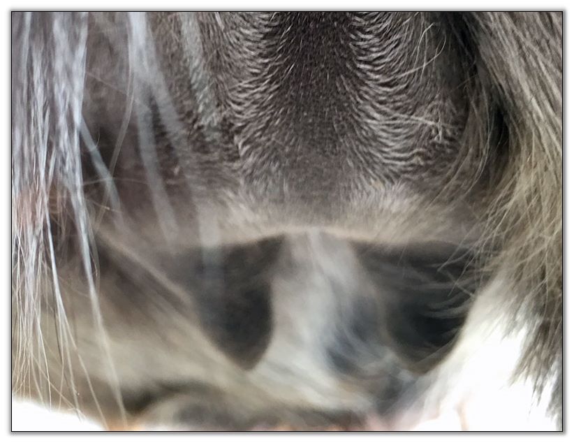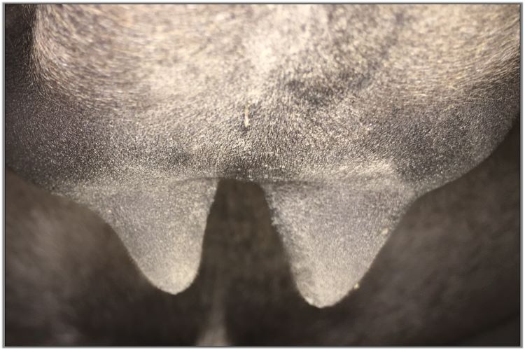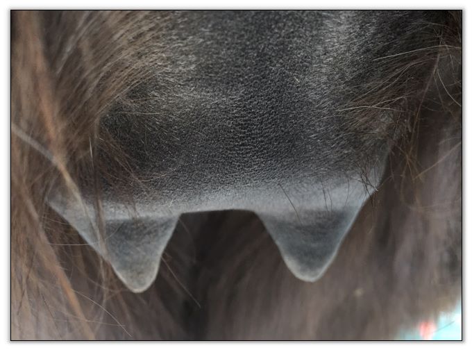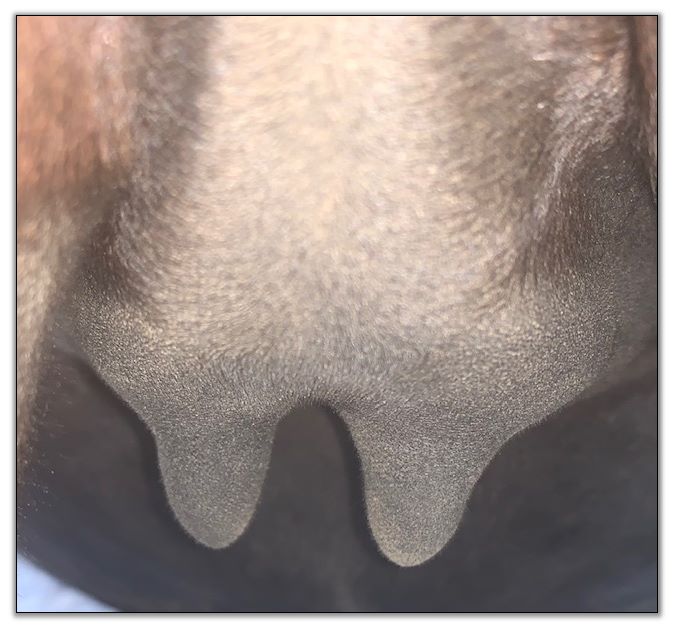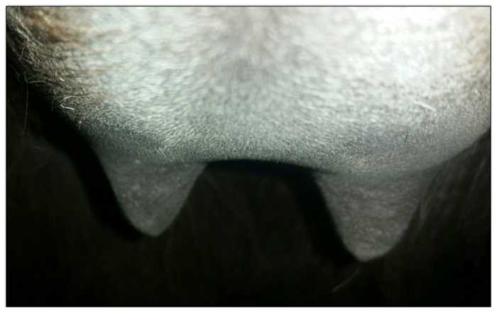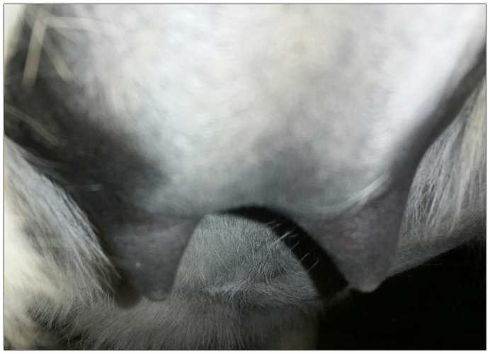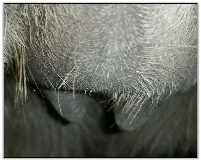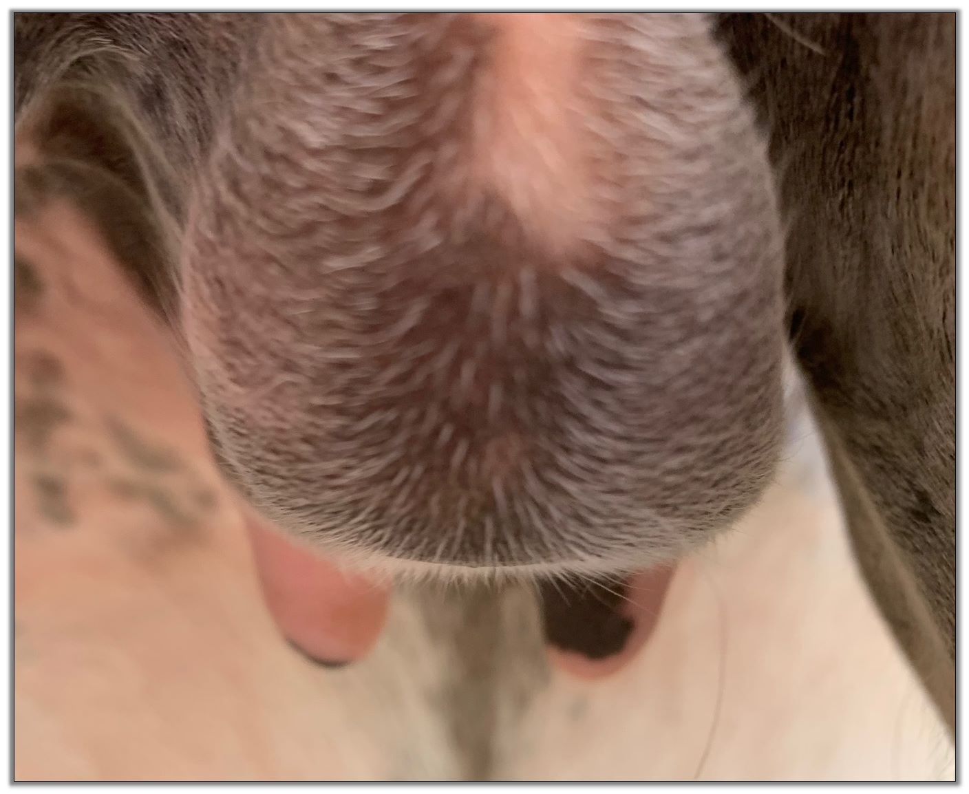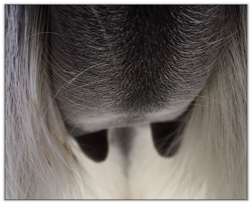 Two hours later and even firmer!! As you can see she is no longer flat but rounding out between her teats. We think she will foal within 24 to 48 hours!