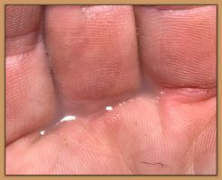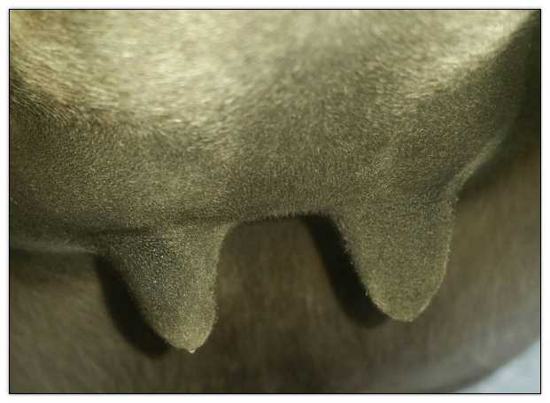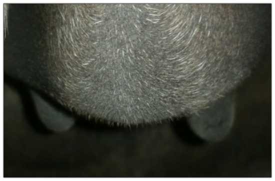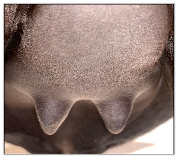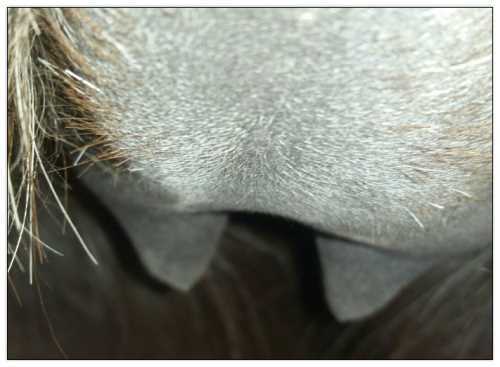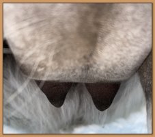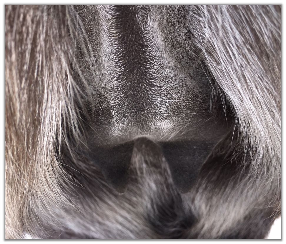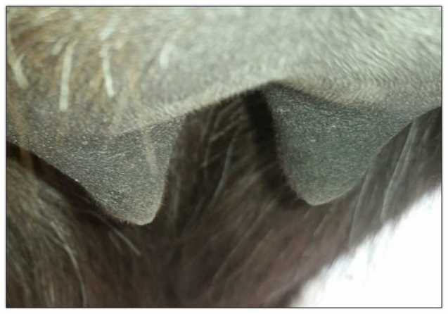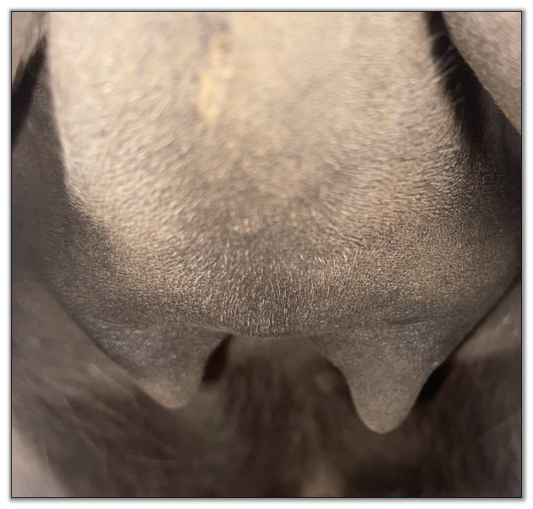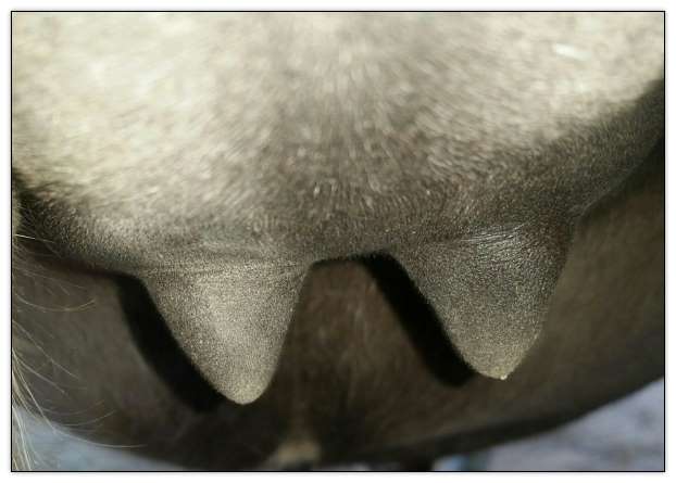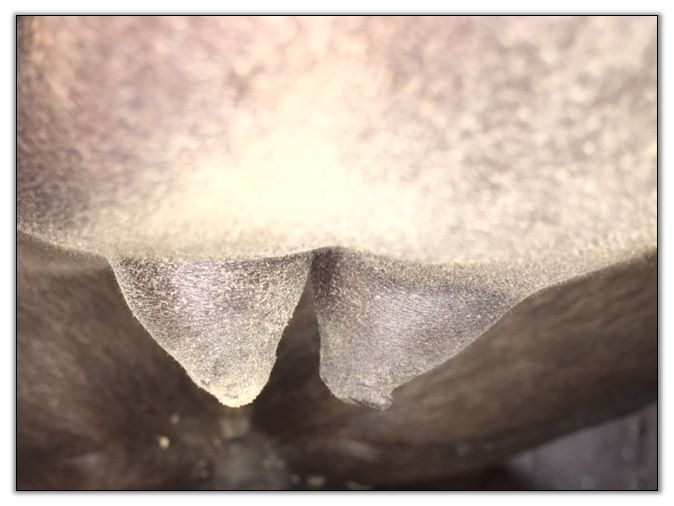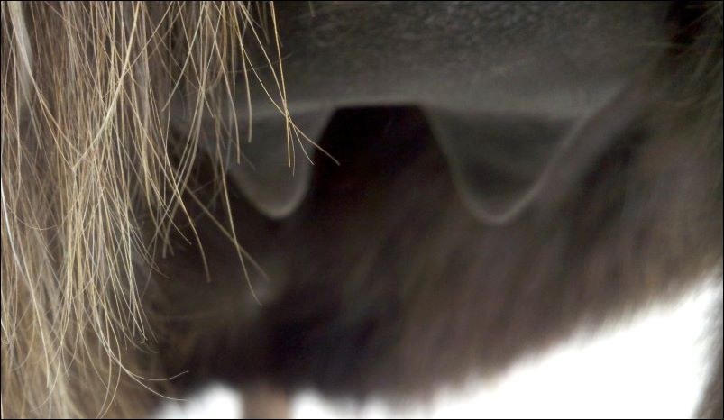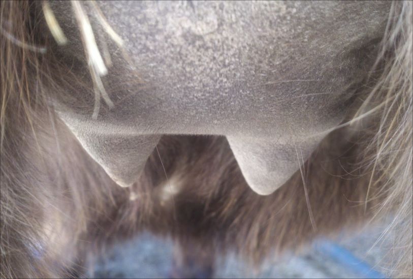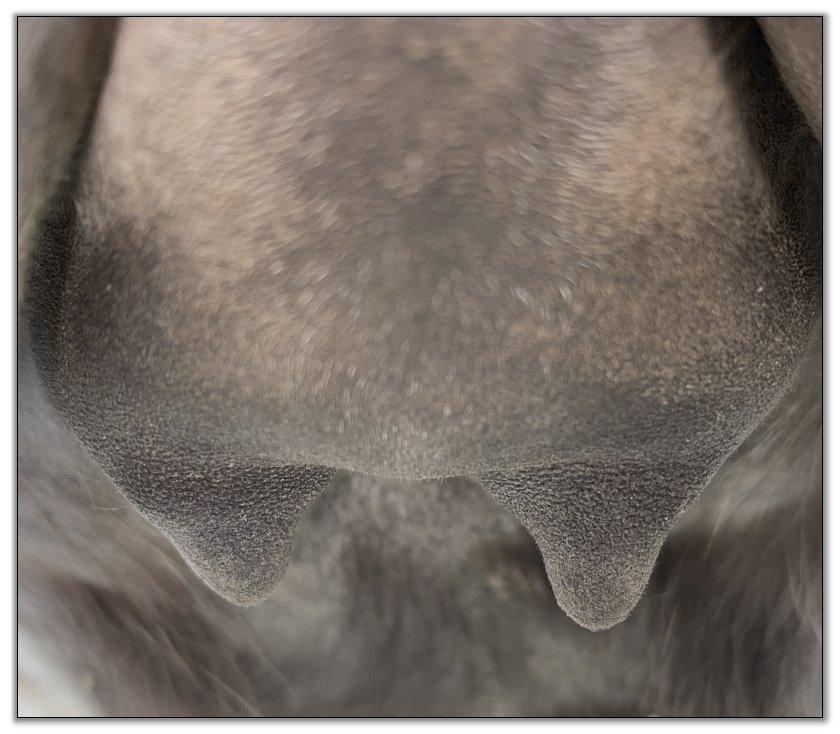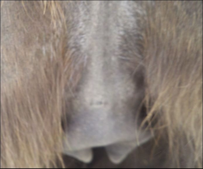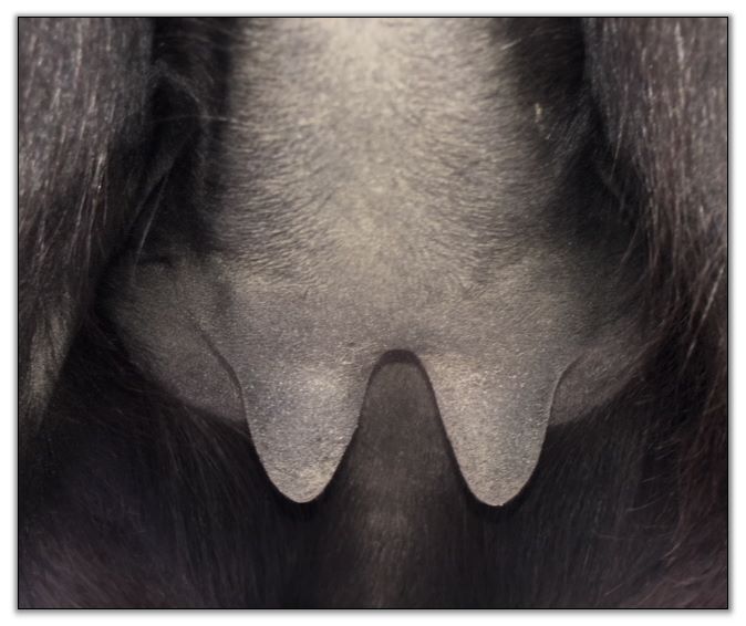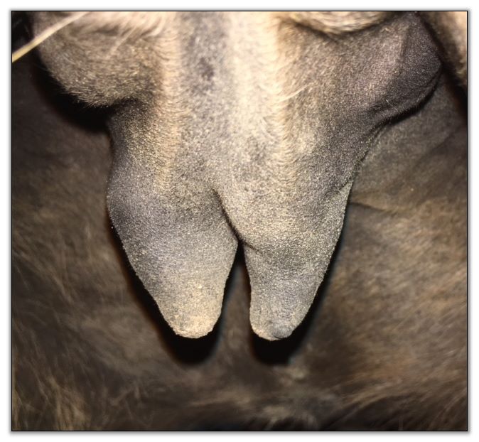 Two hours later and even firmer!! As you can see she is no longer flat but rounding out between her teats. We think she will foal within 24 to 48 hours!