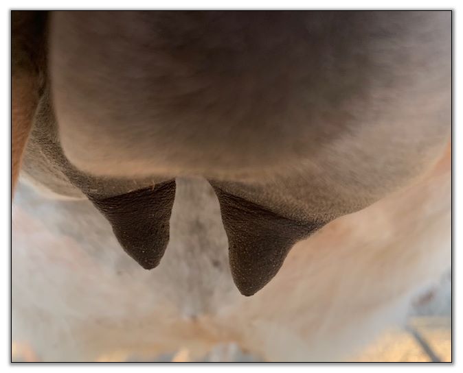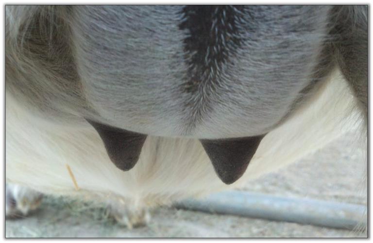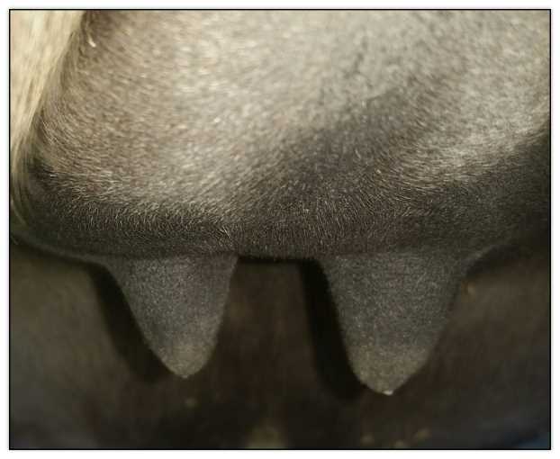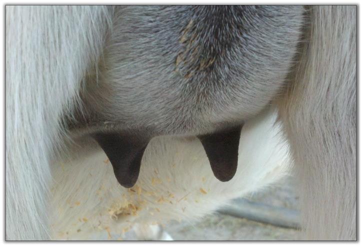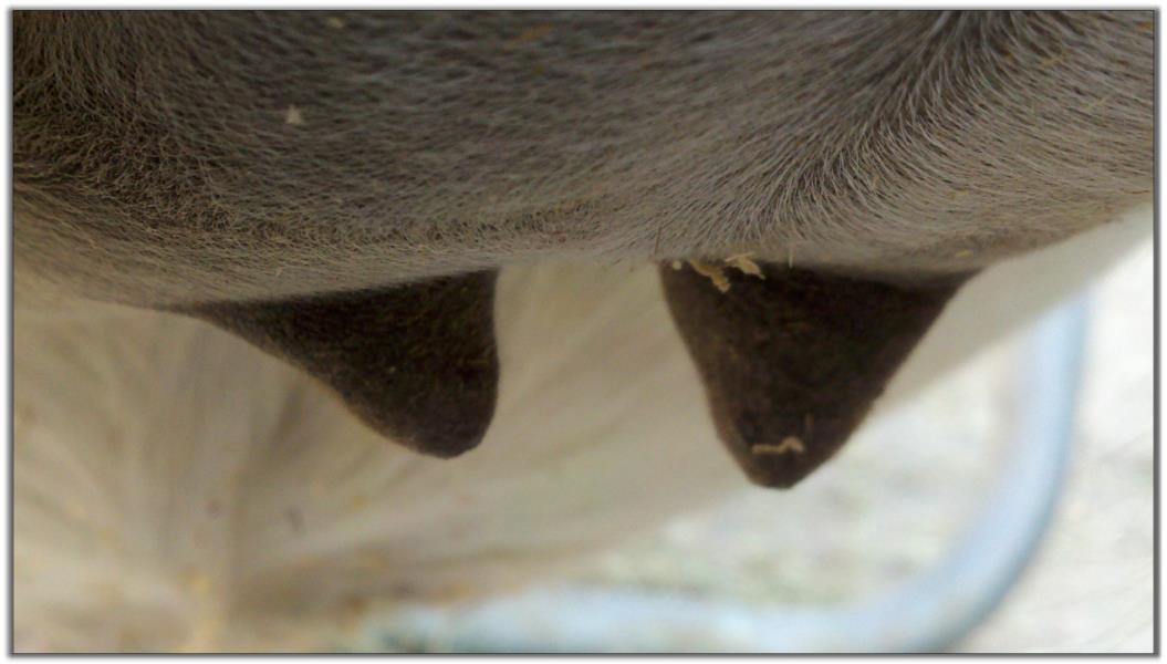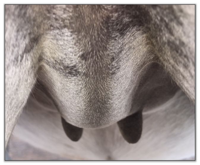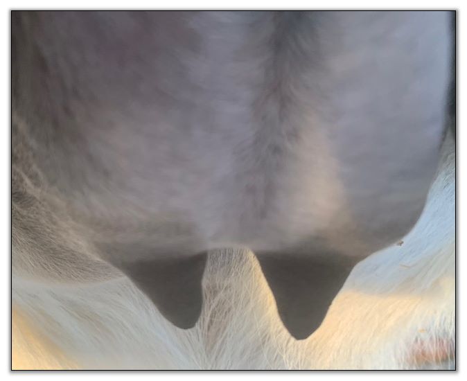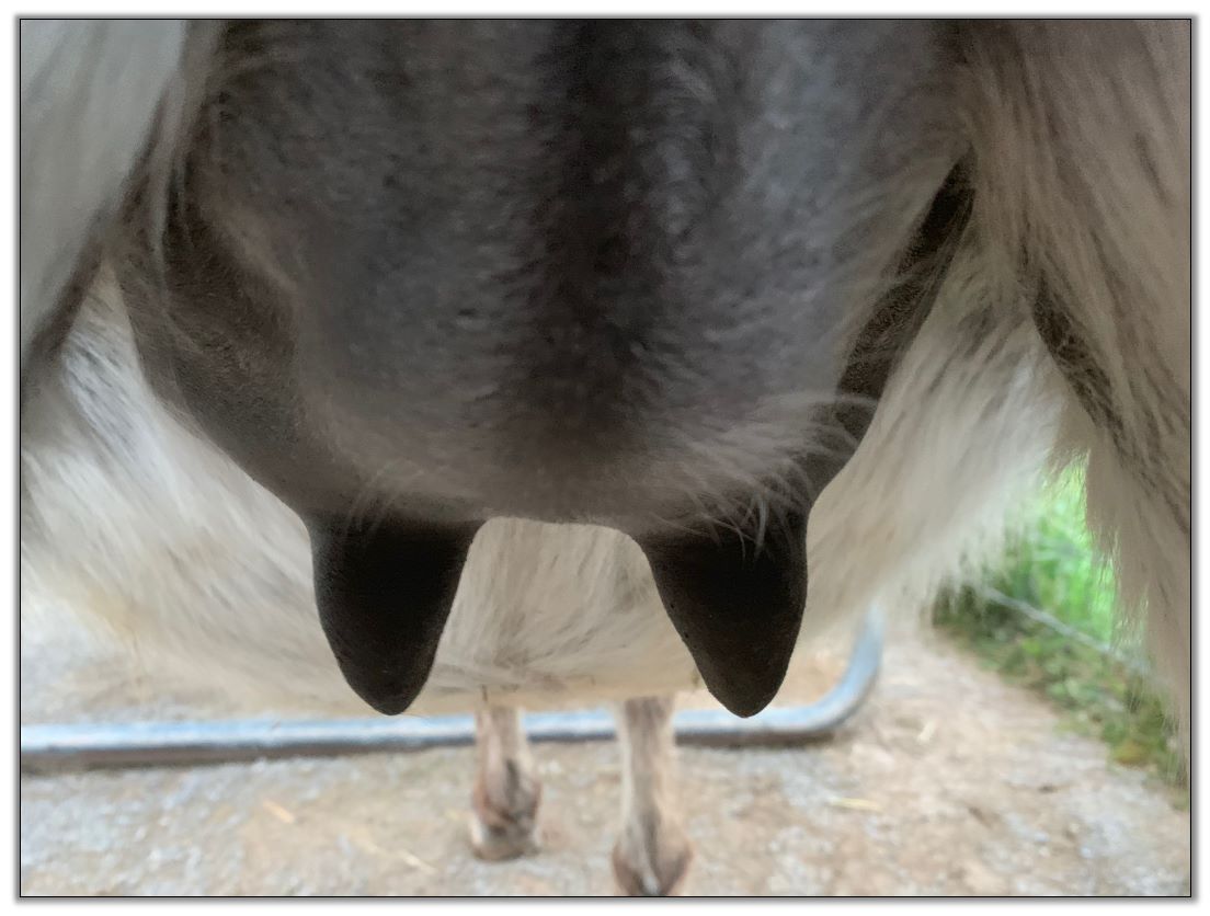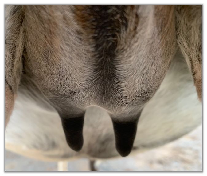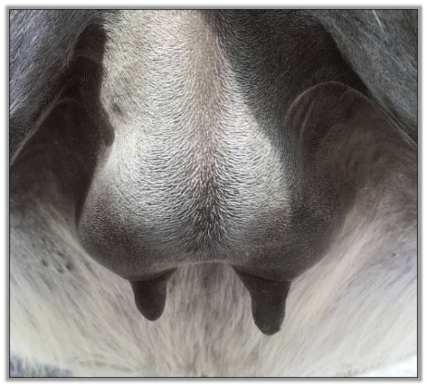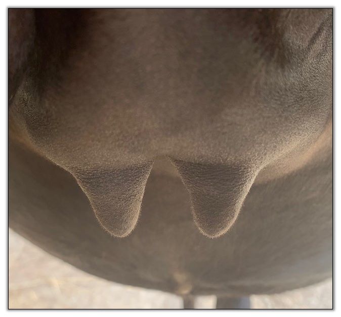Teats still pointing towards one another.