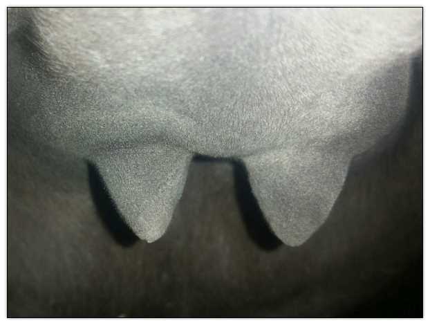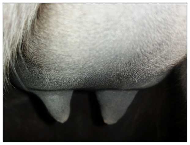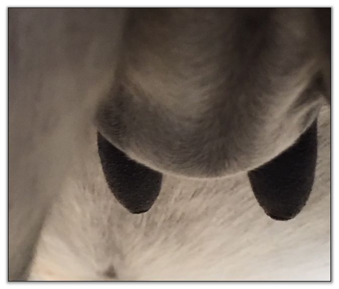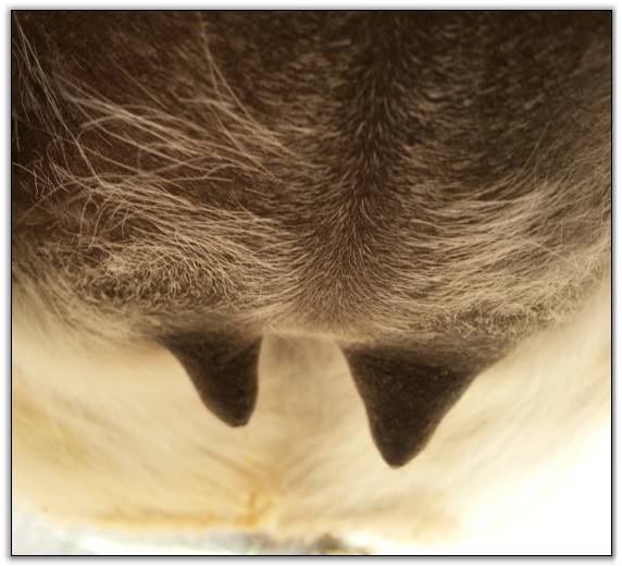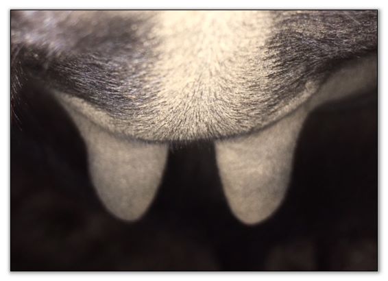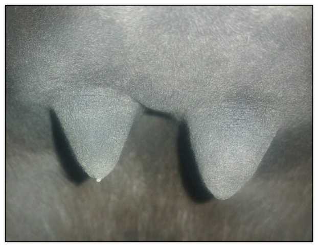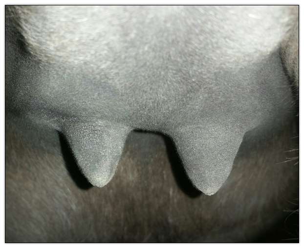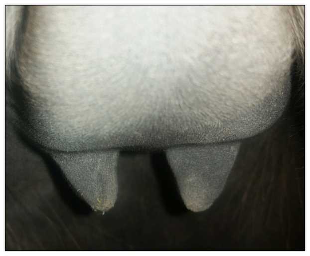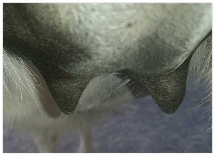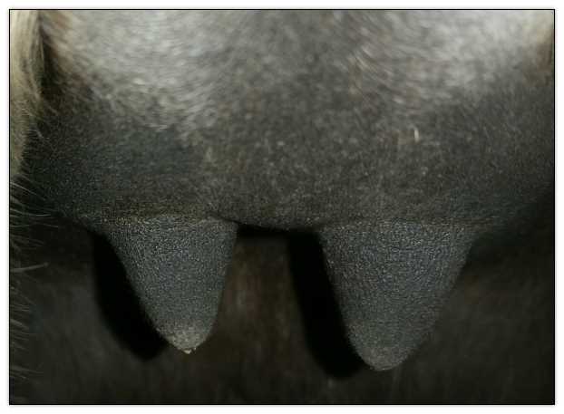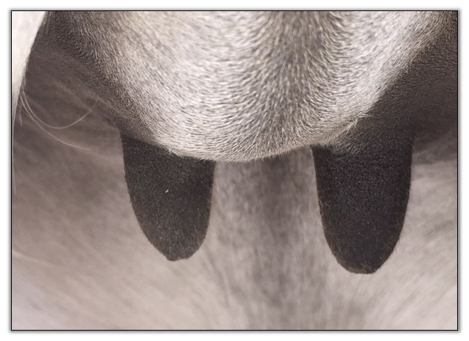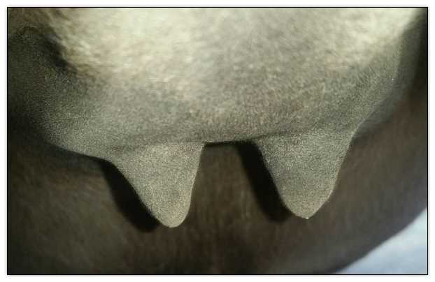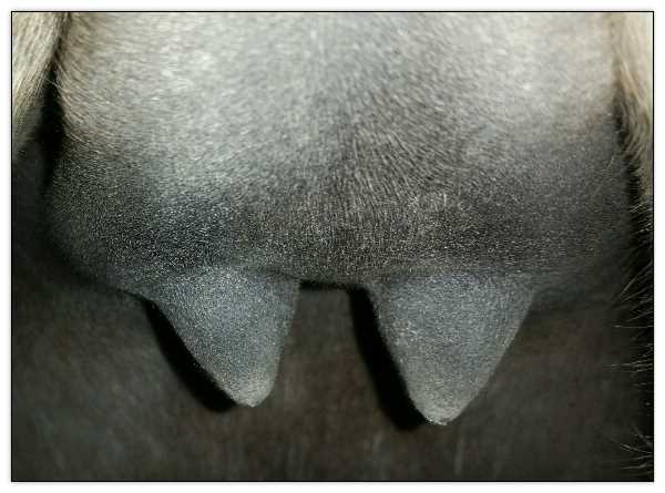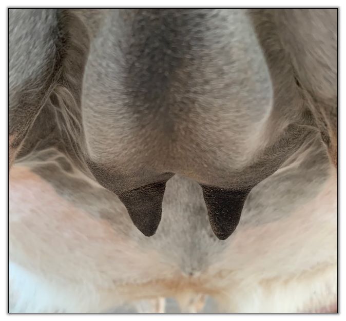 Teats still pointing towards one another.