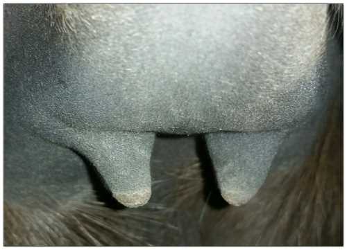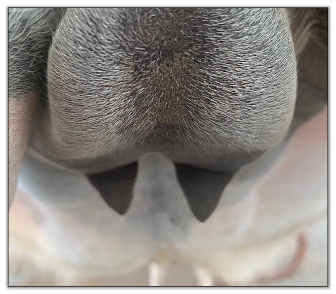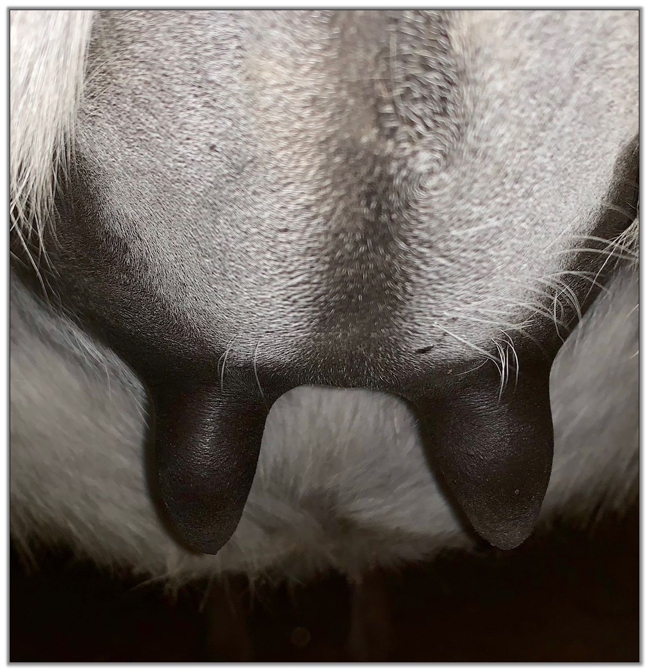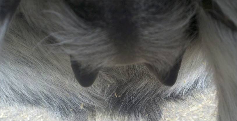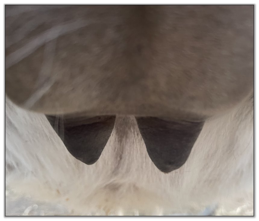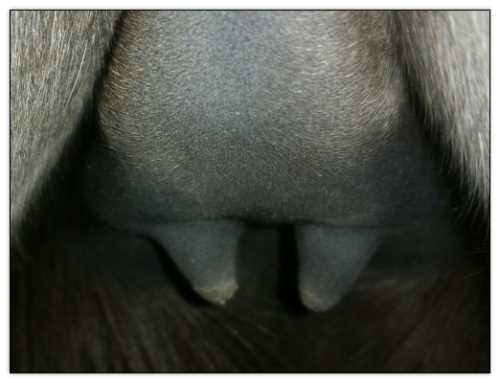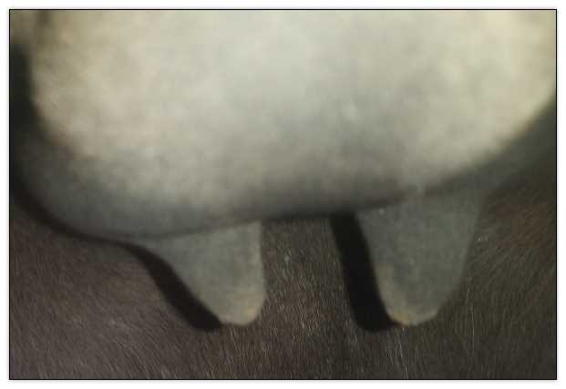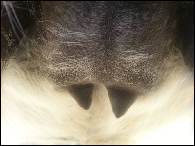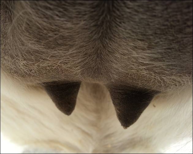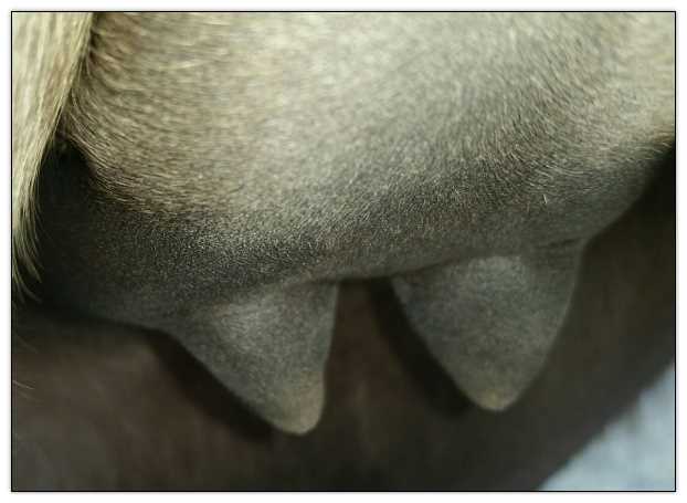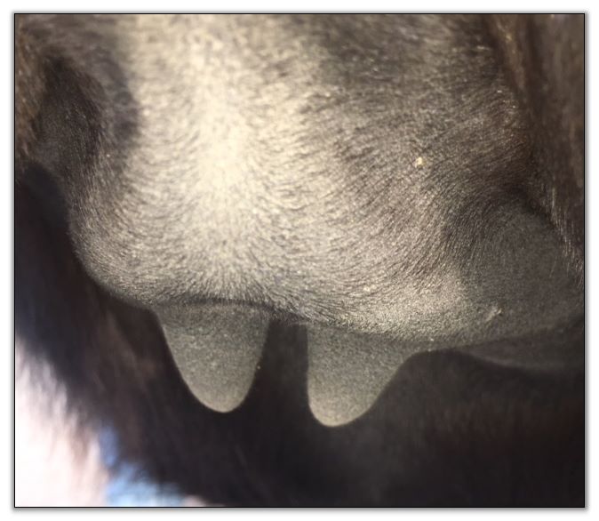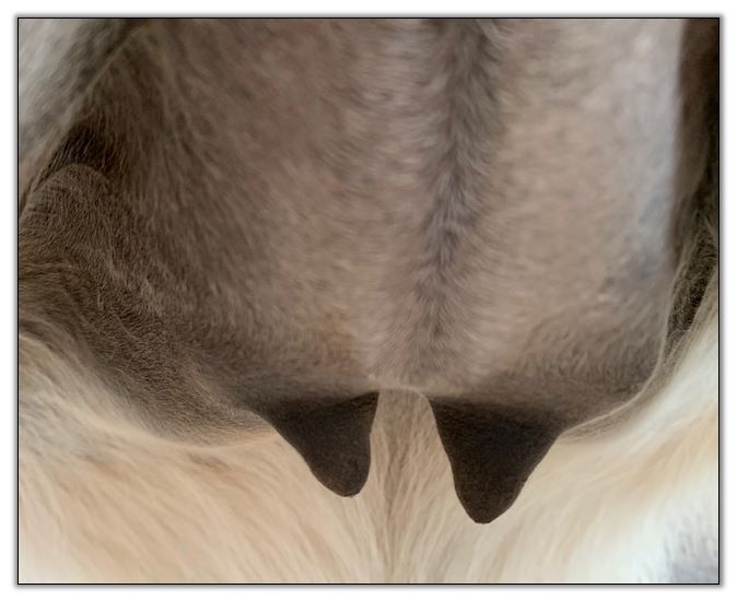 Teats still pointing towards one another.