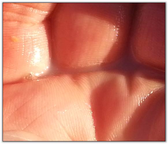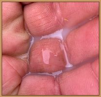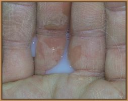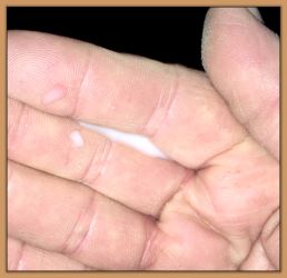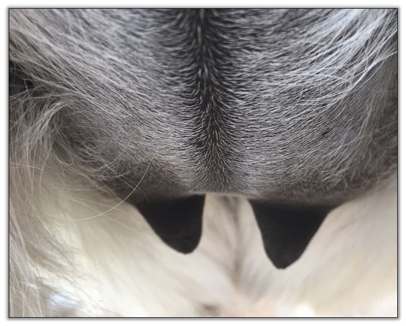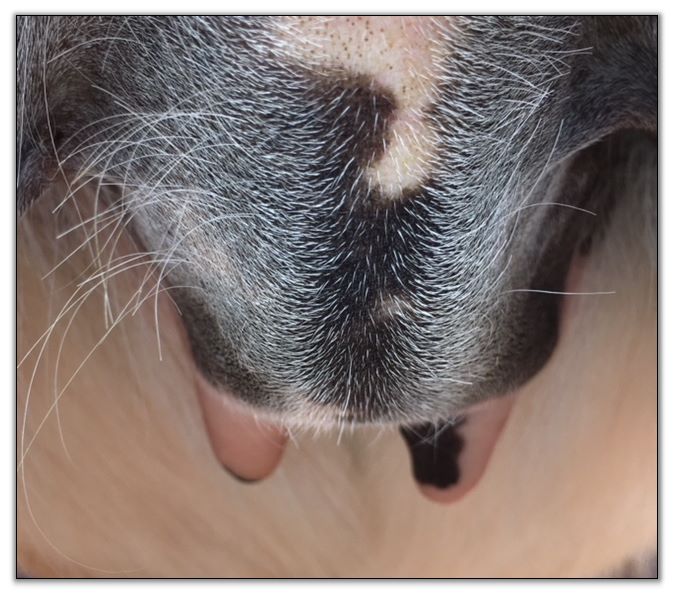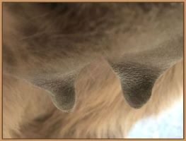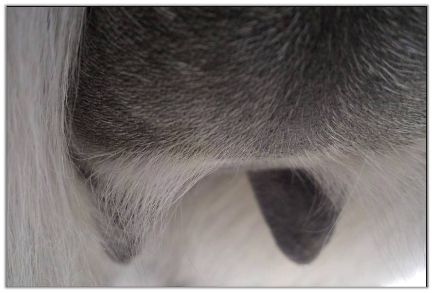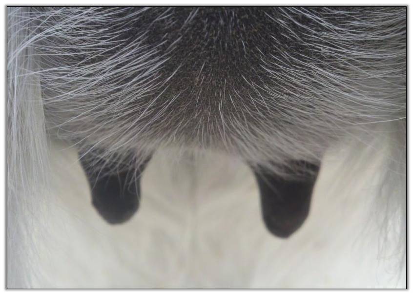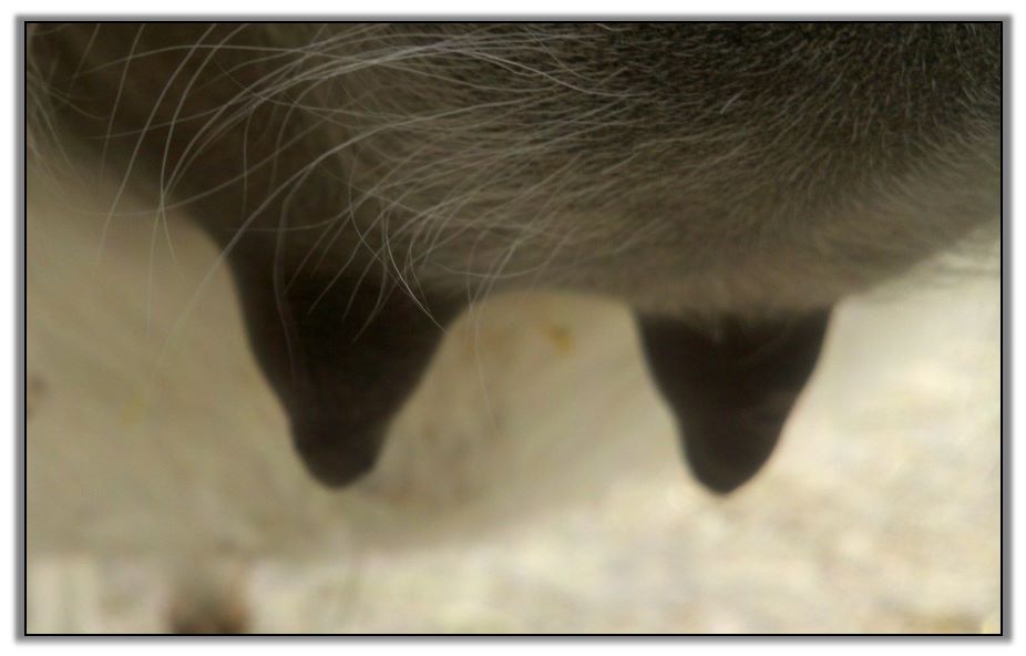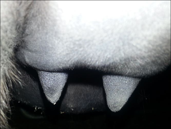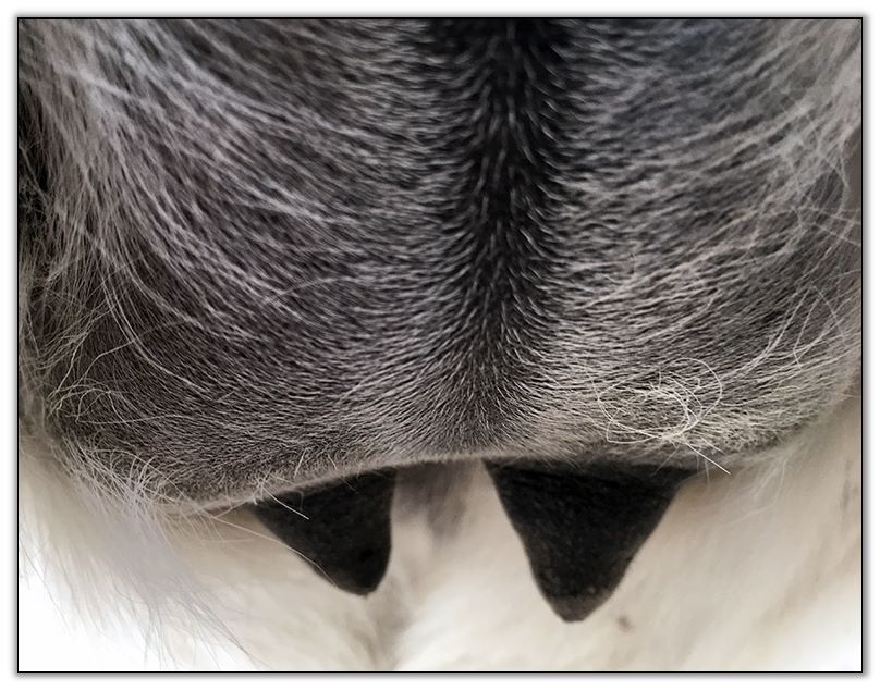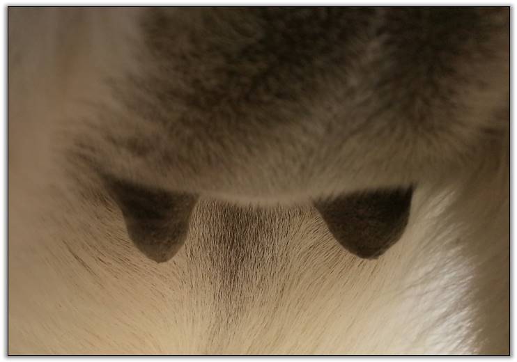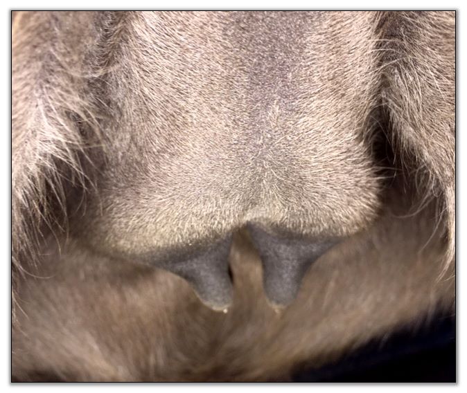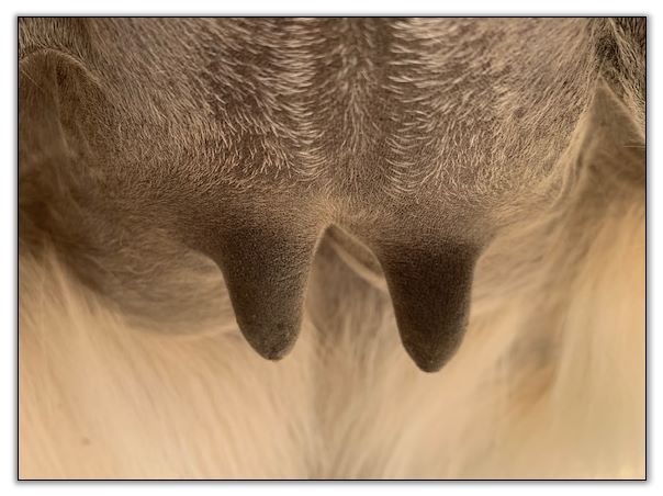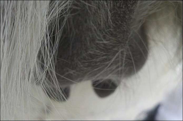 I feel that Bridget will have white milk within 24 hours...her bag/teats are very firm and teats are almost fully engorged...photo taken at 6am.