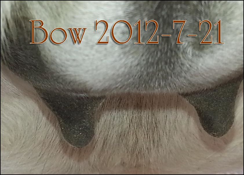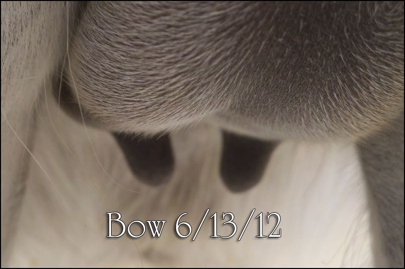 Bow's bag started on 6/01/12...above is a photo we took twelve days later.