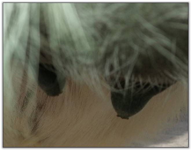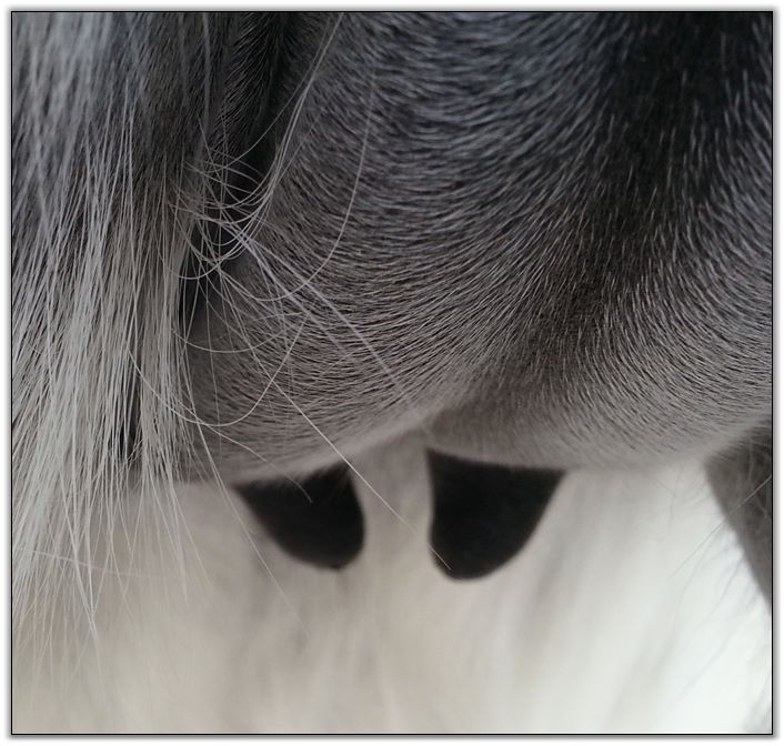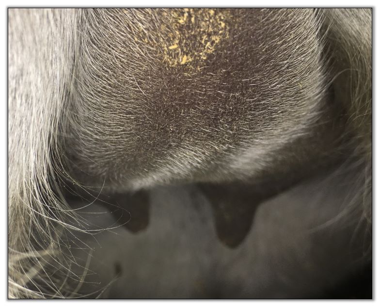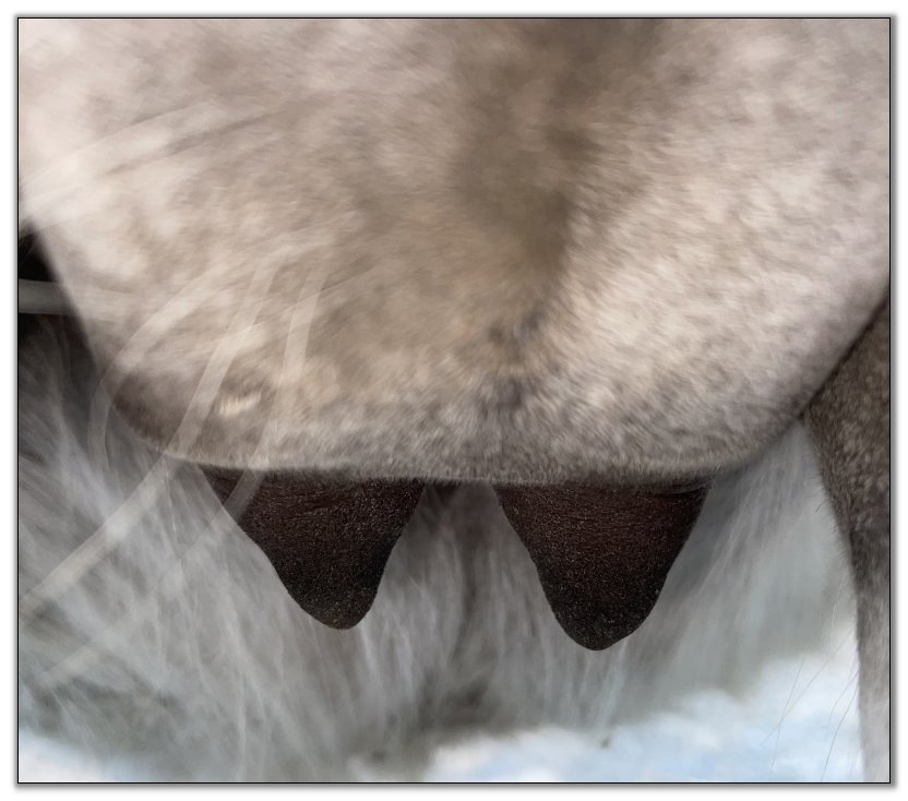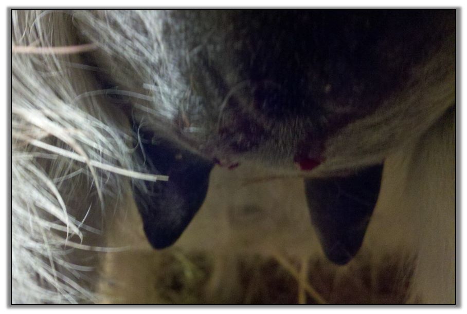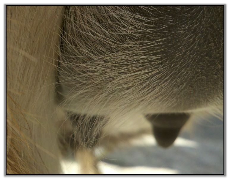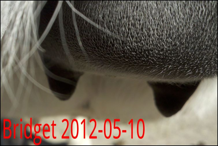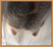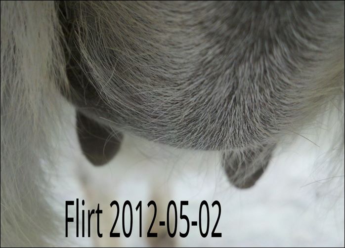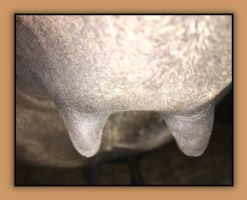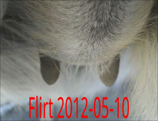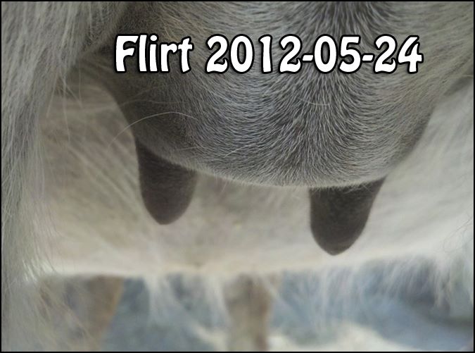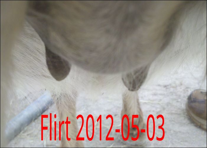 As you can see Flirt's teats have made a significant change. Her milk is still clear but we have moved her to the front stall and paddock for closer observation. It won't be long now!