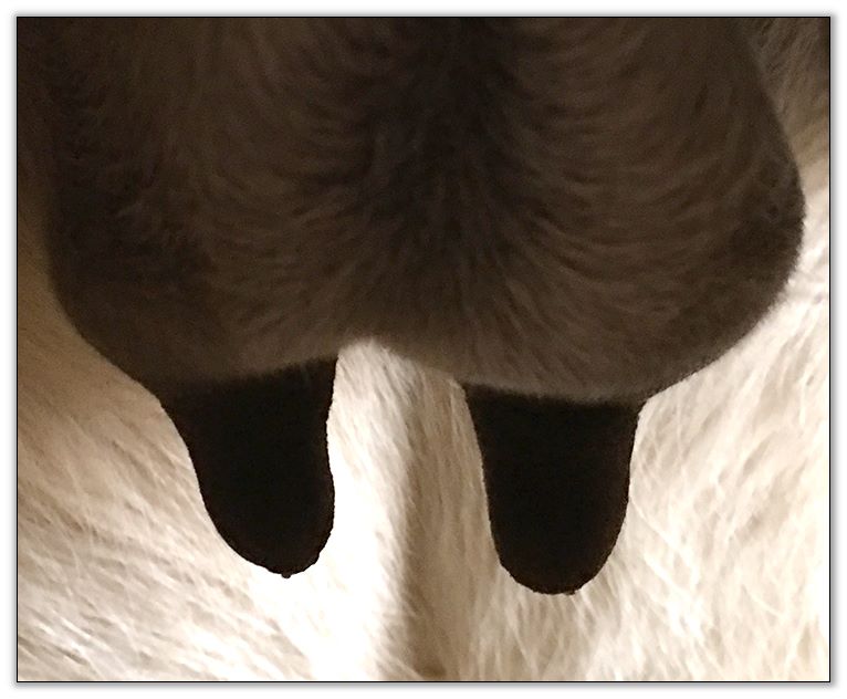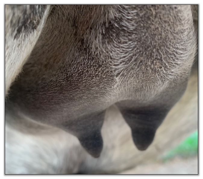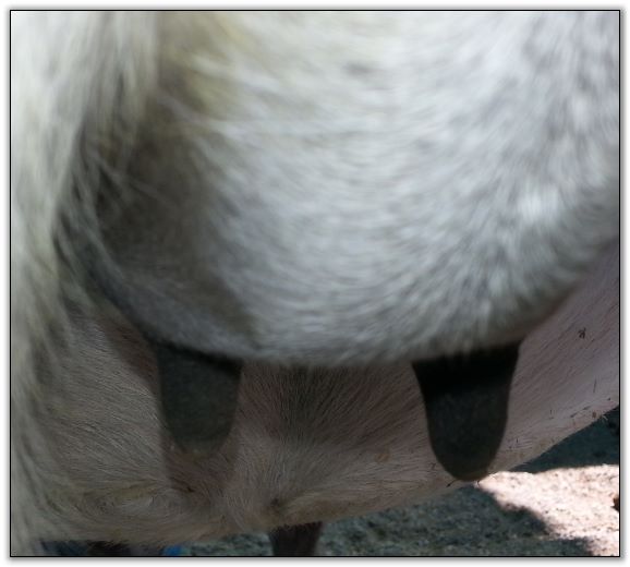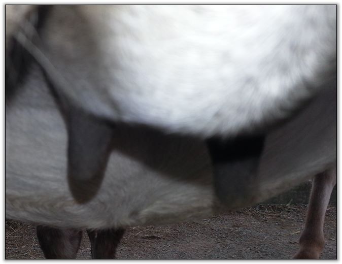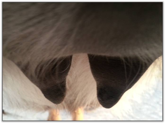 I know it looks close but her bag and teats are soft to the touch..so not today! This is a bad camera angle.