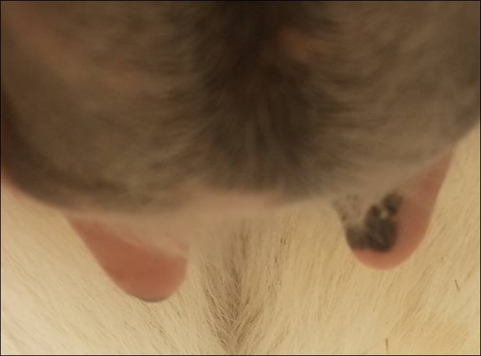 Here is Bow's bag eight days later than the last photo.