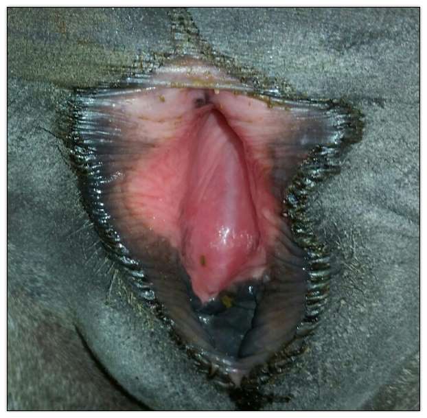 Teats are firming up, inside of vagina is turning red and milk is cloudy this morning!