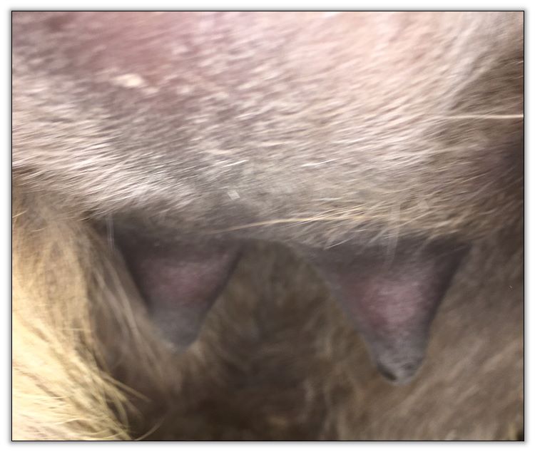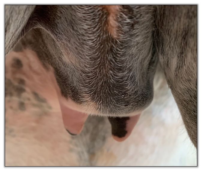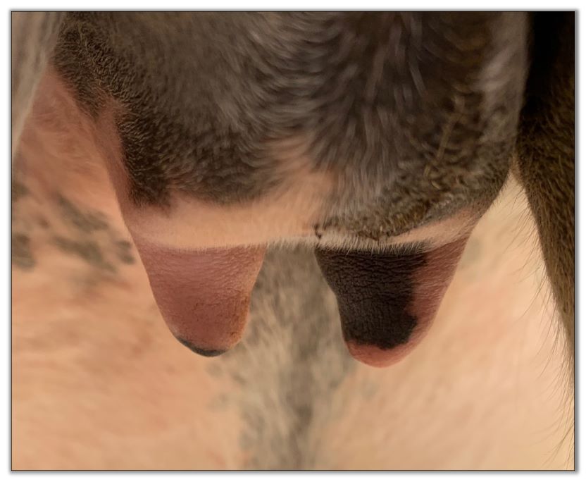 Teats are engorging and the bottom of her bag is rounding out. It won't be long now!